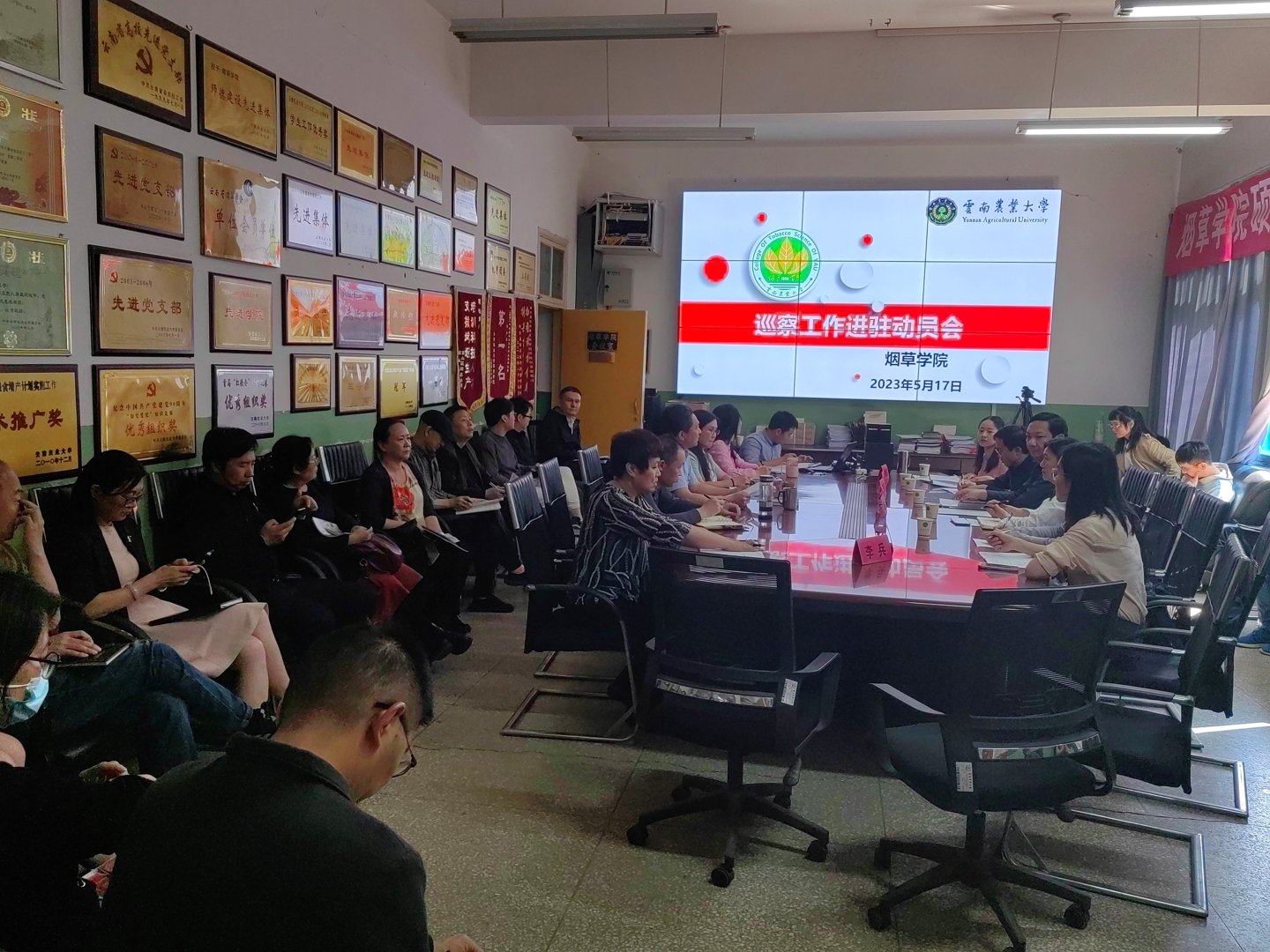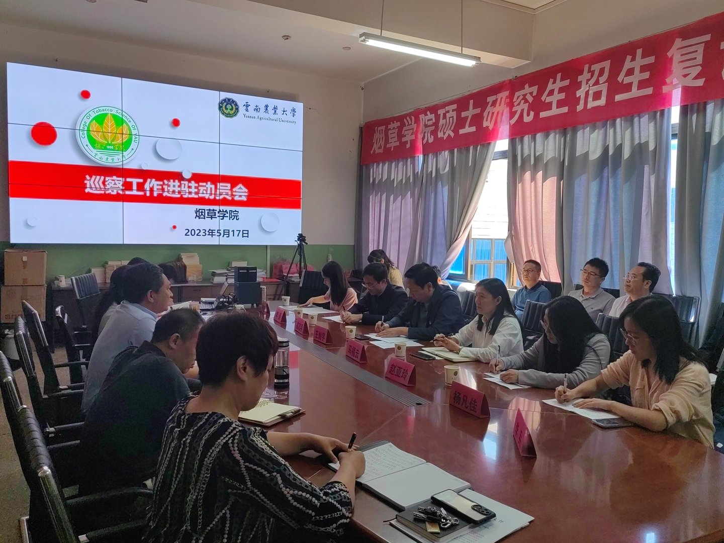 为贯彻落实全面从严治党要求,根据《中共云南农业大学委员会关于印发云南农业大学第八届党委第二轮巡察工作方案的通知》(校党发〔2023〕25号)的部署,烟草学院党委于2023年5月17日16:00在耕读楼附楼3楼烟草学院会议室召开学校党委第二轮巡察工作进驻学院动员会,校巡察工作领导小组成员、审计处处长马福云、第一巡察组组长王灿宇及巡察组全体成员、学院全体教职工、学生代表参加进驻动员大会。烟草学院党委书记李作森主持会议。